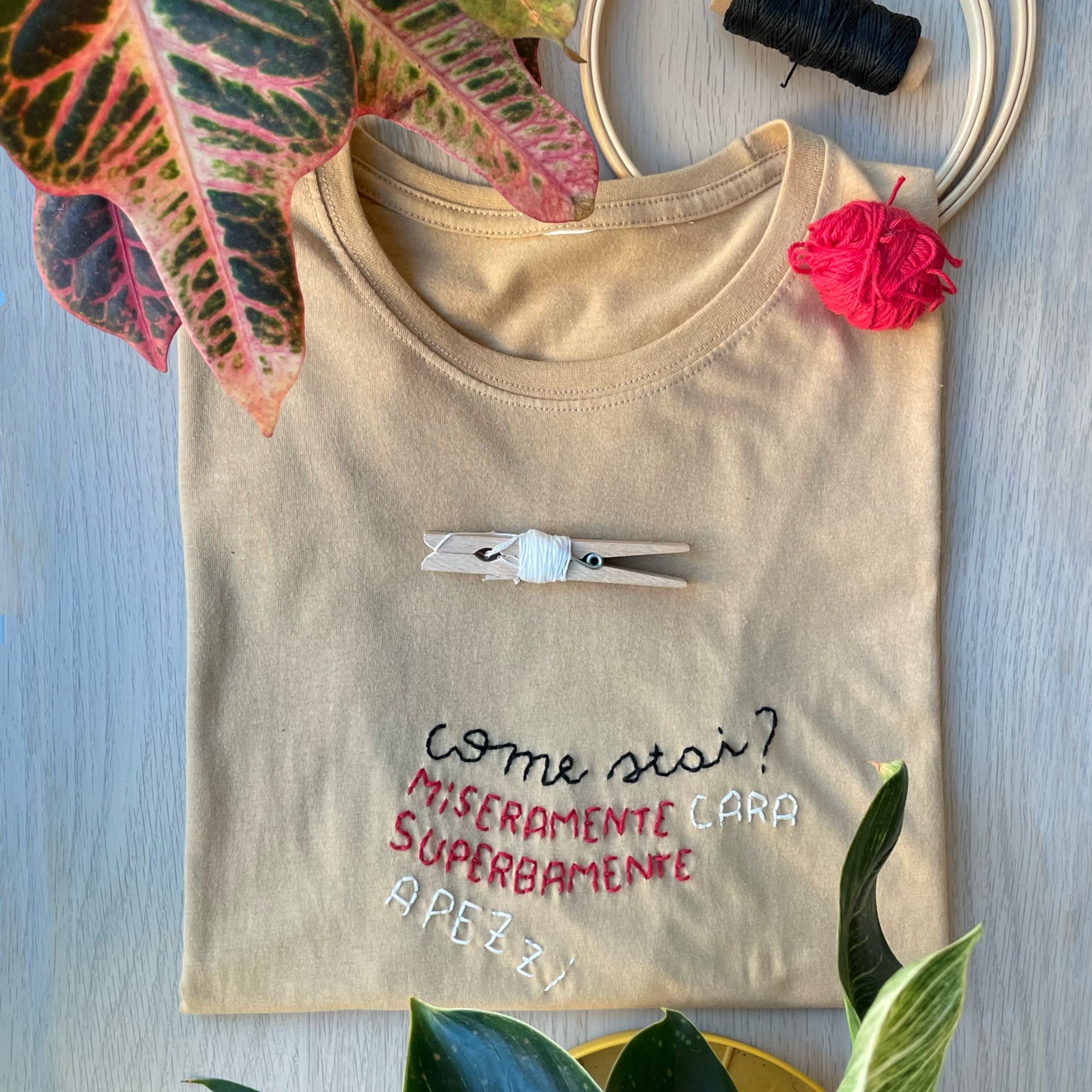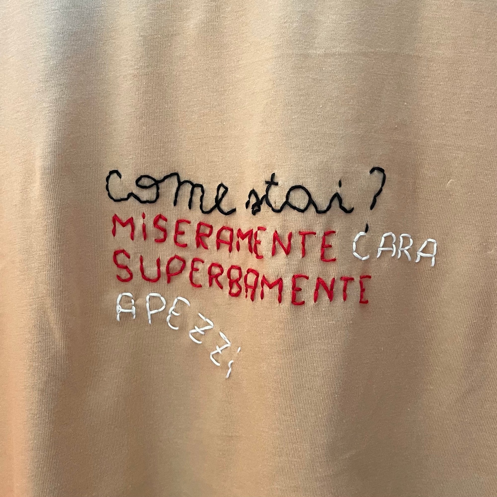 con scritta ricamata a mano