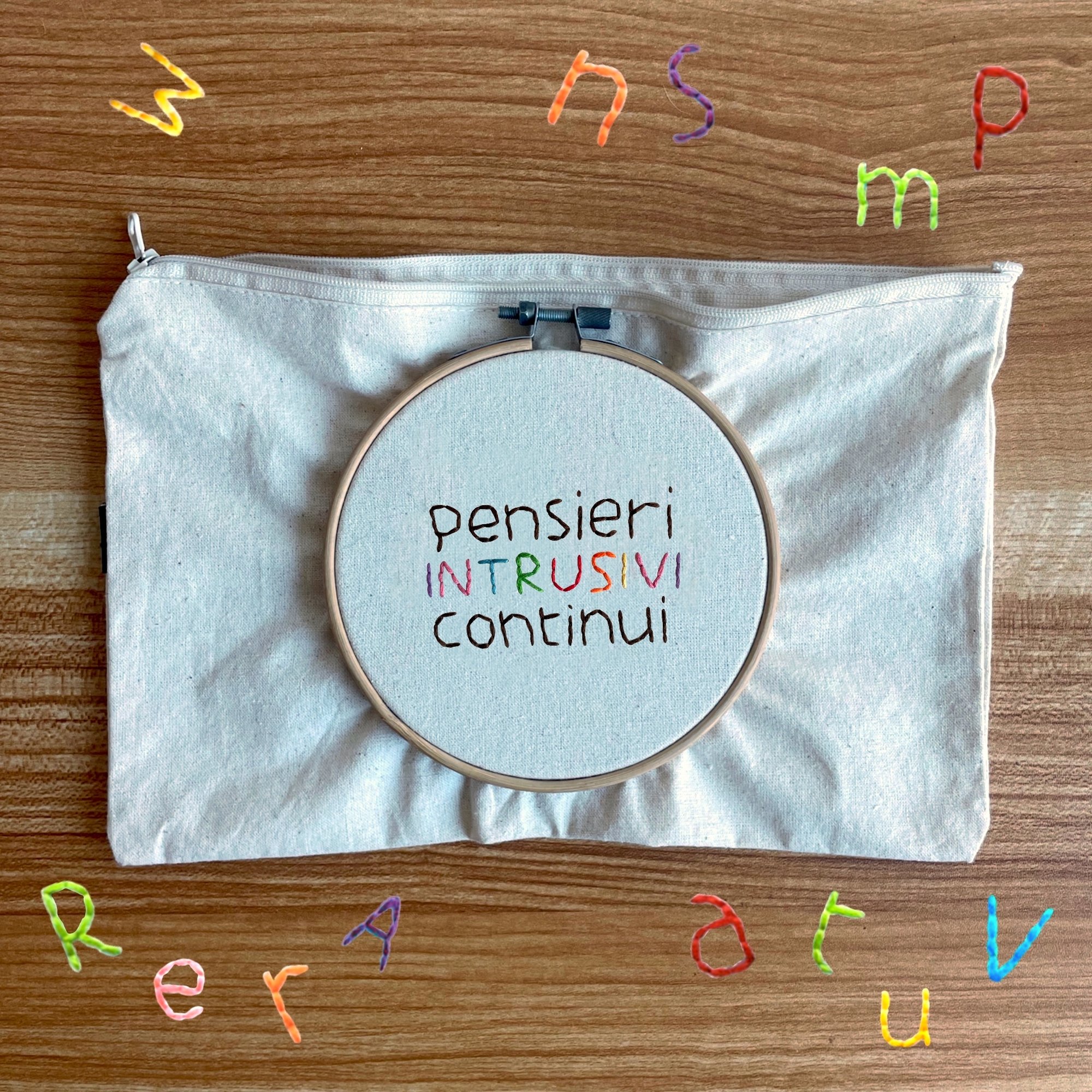 astuccio in tela 100% cotone ricamato a mano